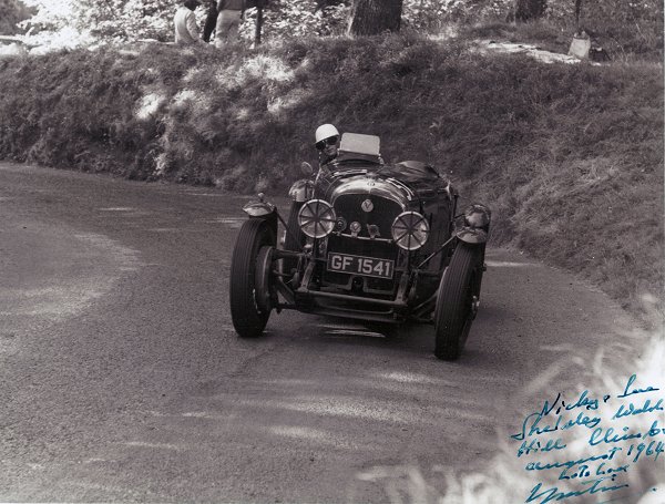 My two uncles (Mum's half brothers) certainly deserve the title colourful. Martin owned a vintage Bentley and used to take my brother, Alan, and me for rides from Greentrees. On one memorable occasion he took us out to race Mini Cooper S's on the newly opened section of the M4 motorway - "I am sure we can blow one up" said Martin. We got behind a Cooper S ... 60, 70, 80, 85, 90, bang! We cheered and then we started to slow down as smoke came out of our bonnet. There were no emergency telephones yet installed on the M4, so we had a long walk to a phone. We got back hours late - my mother was livid. Martin also had raced Bugattis and an ERA in hill climbs and vintage racing car races - we still go to Shelsley Walsh and Prescott hill climbs with him. He is over 75 and we have trouble keeping up with him as he walks up the hills.